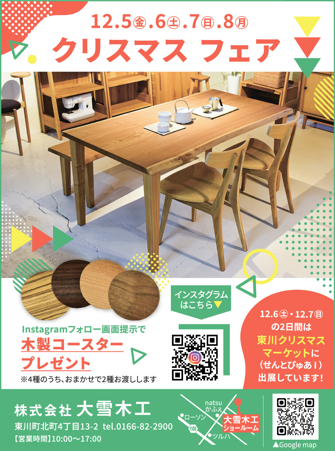 12/5(金) ー 12/8(月) の4日間限定「クリスマスフェア」開催します!
