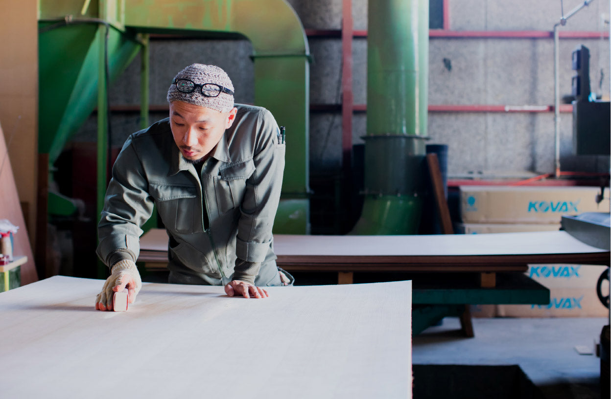 大雪木工は、北海道・大雪山の麓、旭川の地で家具づくりを行っています。機械による安定した生産力と、職人の手仕事が生み出す繊細な仕上がり。その両方を活かし、長く使い続けられる家具をつくり続けています。また「大雪の大切プロジェクト」を通して、これからの時代にふさわしいものづくりのあり方を探求しています。