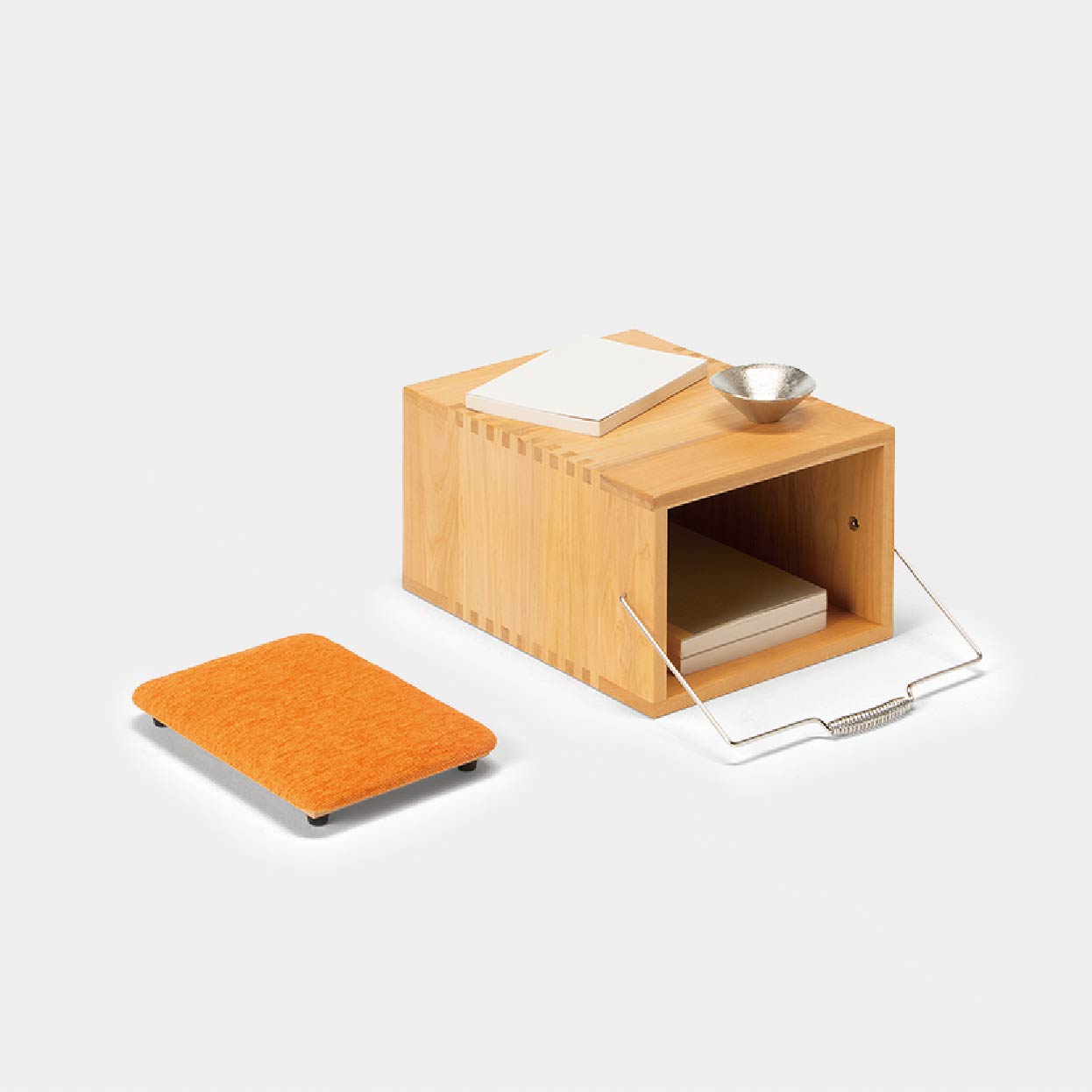 ステンレス加工では世界有数の産地である、新潟の燕三条地区で製造された「バケツの取っ手」と、大雪木工が得意とする「箱」を組み合わせることで生まれたバケツ箱。A4サイズ程度の物を運ぶことができる箱であり、座る道具でもあるアイテムです。