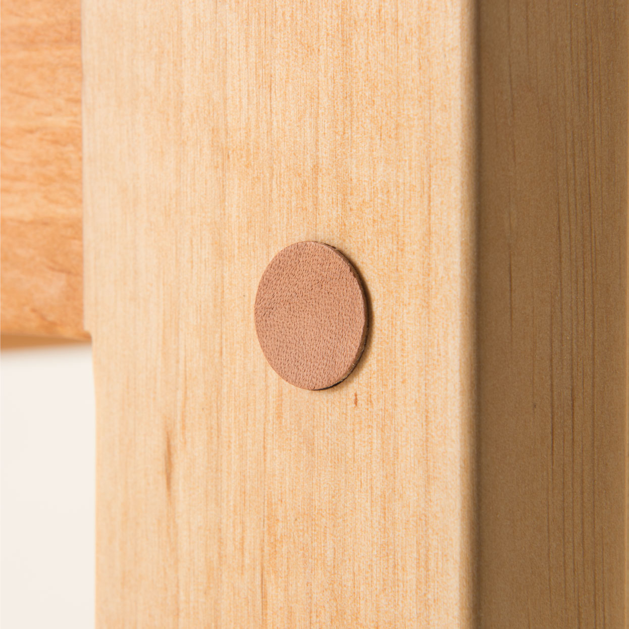 学習机としてはもちろん、そのまま大人になっても使い続けることができるシンプルなデザインのデスク。ころころ転がるえんぴつなどの落下を防止する転び止めや、ライトやパソコンなどのケーブル類を逃す隙間、そして革製のボルト隠しなど、細部までこだわったデスクです。