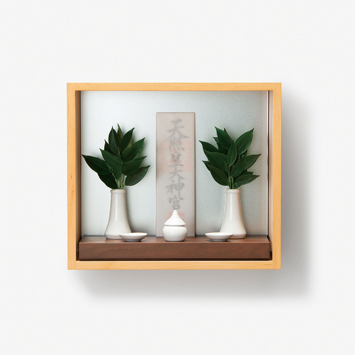 現代の日本の住空間と調和する、シンプルな神棚です。コンパクトながらしっかりと神具の並ぶサイズを実現し、お札を倒れにくくするスリットも深さや角度にこだわるなど、シンプルながらも機能的なデザイン。フロストミラーの反射で、神棚の中をやさしい自然の光で照らします。同じTPシリーズのシンプルな仏壇とも調和するデザインです。