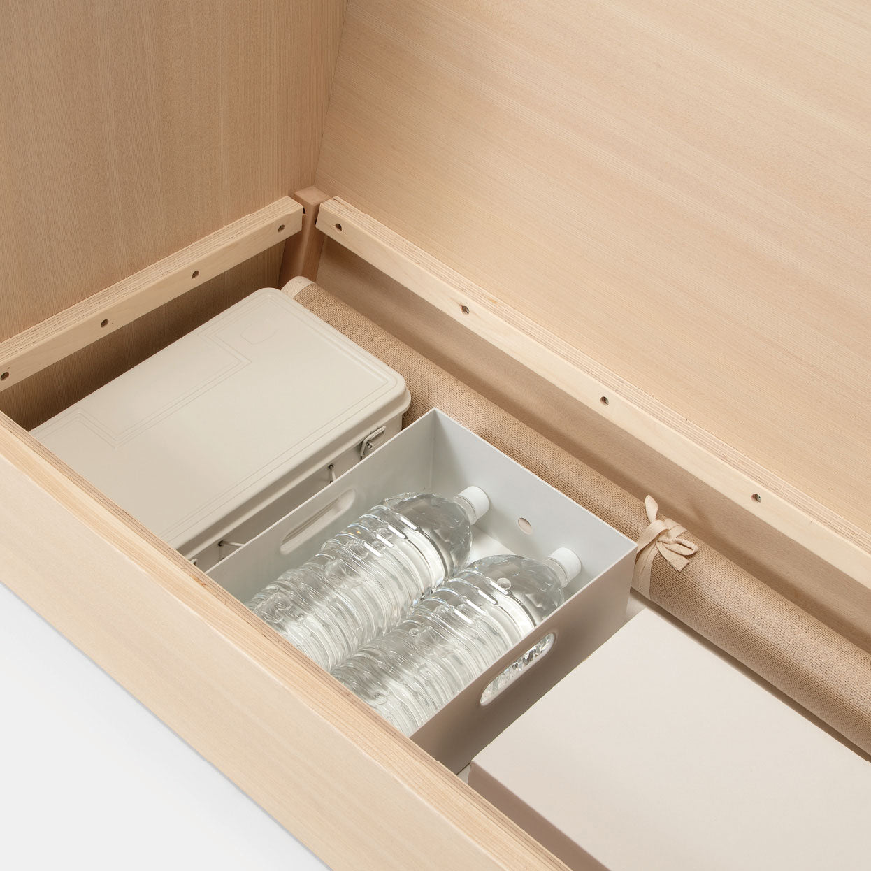 住環境を選ばないコンパクトサイズのソファ。スマホやグラスが置けるアームや、防災用具などをしまえる座面下など「気が利く」仕様が特徴。クッションをアームに置けばカウチにも。張地の色は、背と座を分けたり、シンプルに統一したり、組み合わせを楽しめます。