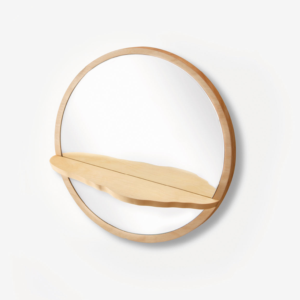 wakkaは、北海道の山並みをトレースした有機的な棚がシンプルなミラーに映り込む機能的で個性的な壁面家具。丸い「旭岳」と、四角い「十勝岳」の2種類からお選びいただけます。